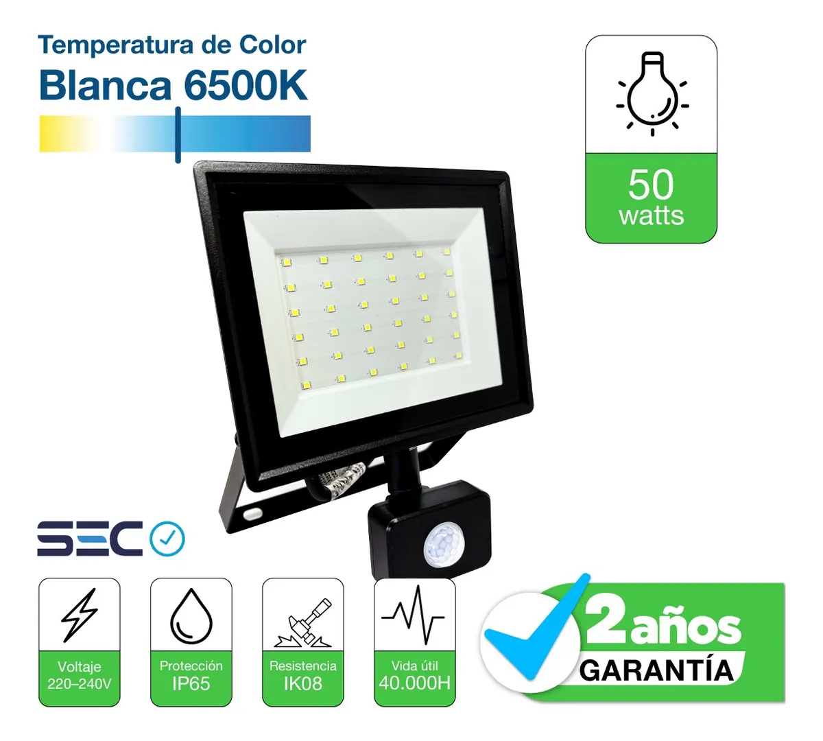 Sensor de movimiento integrado para mayor seguridad y ahorro energético.